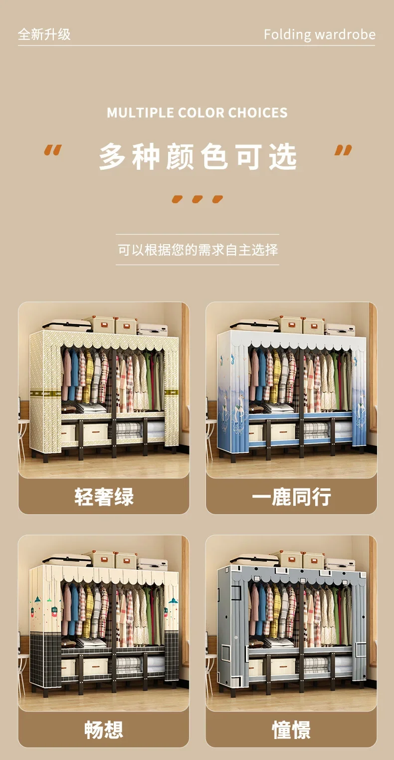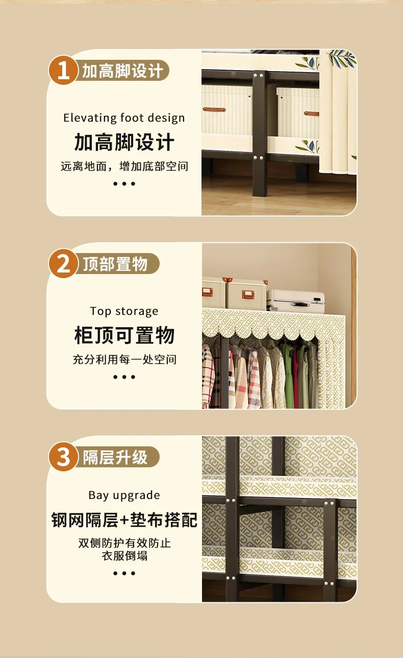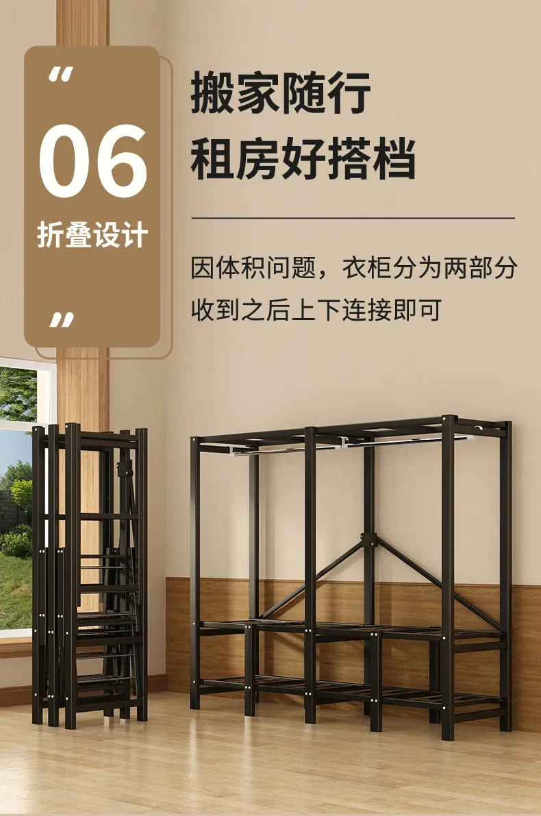 • Storage Organizer Closet Open Bedroom Clothes Partitions Cupboard Fabric Space Saving Wardrobe Metal Guarda Roupa Home Furniture