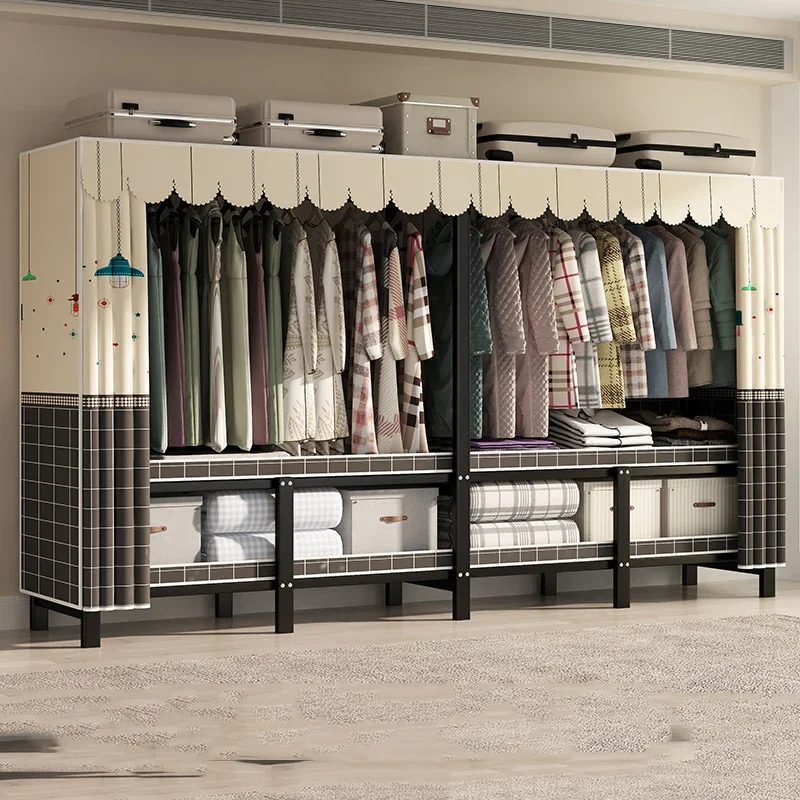 Storage Organizer Closet Open Bedroom Clothes Partitions Cupboard Fabric Space Saving Wardrobe Metal Guarda Roupa Home Furniture